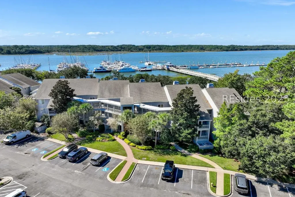 Experience panoramic ICW/Skull Creek & Marina views from this charming, updated, value priced, 2BR/2BA, 1600 SQ FT villa with convenient, much desired first floor locale in popular HHP. Features include smooth ceilings, walls of windows to view, quartz/granite counters, subway tile backsplash, attractive re-faced kitchen cabinetry, wood/tile/carpet flooring, custom window treatments, designer fixtures/hardware/lighting, ceiling fans, wood burning fireplace & impressive storage/closet space. Very livable floor plan offers updated kitchen w/island (butcher block top & breakfast bar) & stainless steel appliance package open to dining & expansive great rm, Carolina rm with shiplap walls & glass door to grounds, laundry rm and excellent BR separation featuring roomy primary suite with dual walk-in closets & well-appointed bath (dual vanities, vessel sinks & separate glass/tile surround walk-in shower) + ample guest BR suite with walk-in closet & private bath. All with covered entry, large exterior storage closet, impressive on-site pool/tennis/pickleball and prime location across street from CCHH & close proximity to shopping, dining, entertainment and all community amenities.